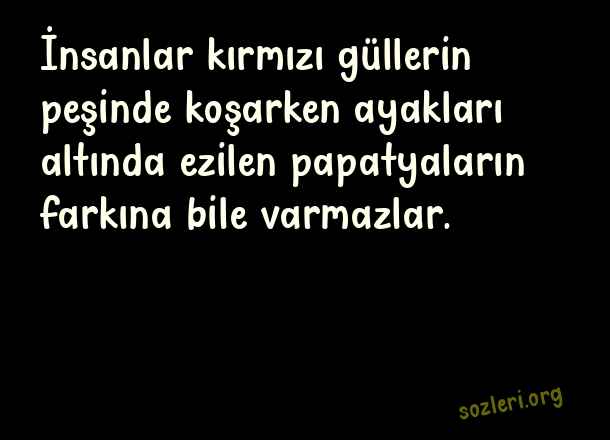 İnsanlar kırmızı güllerin peşinde koşarken ayakları altında ezilen papatyaların farkına bile varmazlar. ( Kırmızı )