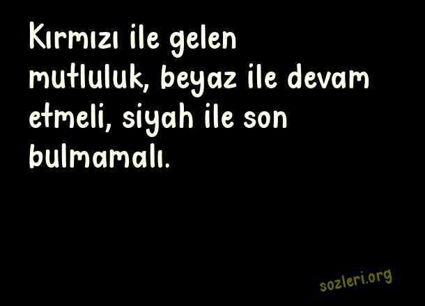 Kırmızı ile gelen mutluluk, beyaz ile devam etmeli, siyah ile son bulmamalı. ( Kırmızı )