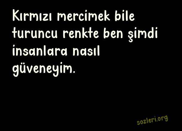Kırmızı mercimek bile turuncu renkte ben şimdi insanlara nasıl güveneyim. ( Kırmızı )