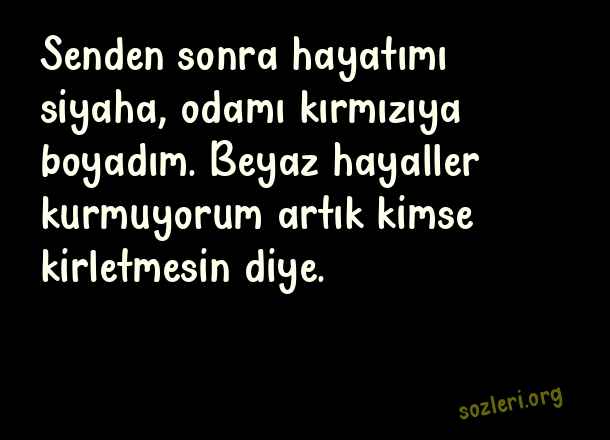 Senden sonra hayatımı siyaha, odamı kırmızıya boyadım. Beyaz hayaller kurmuyorum artık kimse kirletmesin diye. ( Kırmızı )