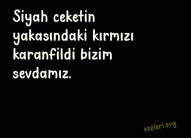 Siyah ceketin yakasındaki kırmızı karanfildi bizim sevdamız. ( Kırmızı )