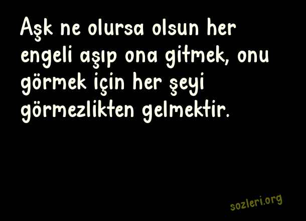Aşk ne olursa olsun her engeli aşıp ona gitmek, onu görmek için her şeyi görmezlikten gelmektir. ( Klasik Aşk )