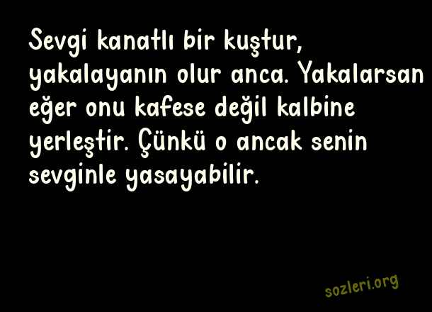 Sevgi kanatlı bir kuştur, yakalayanın olur anca. Yakalarsan eğer onu kafese değil kalbine yerleştir. Çünkü o ancak senin sevginle yasayabilir. ( Kocaya Aşk )