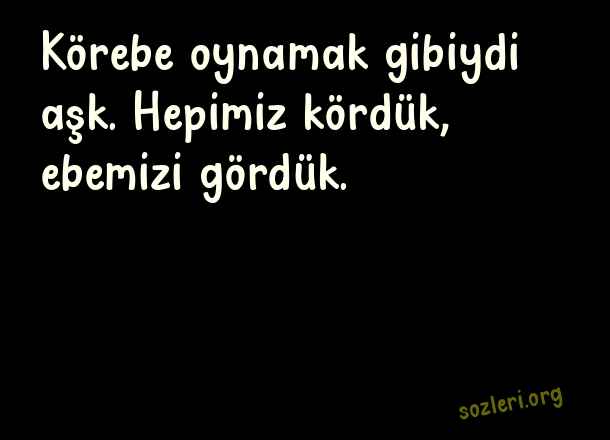 Körebe oynamak gibiydi aşk, hepimiz kördük ebemizi gördük.