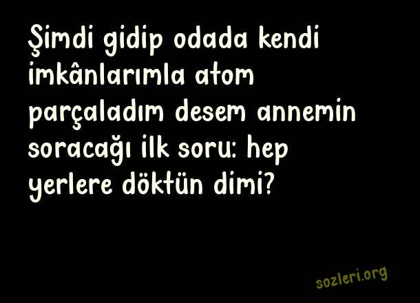 Şimdi gidip odada kendi imkânlarımla atom parçaladım desem annemin soracağı ilk soru: hep yerlere döktün dimi? ( Komik İnstagram )