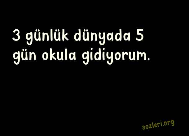 3 günlük dünyada - Okulların Açılması İle İlgili Komik Sözler .. 3 günlük dünyada 5 gün okula gidiyorum. ( Okulların Açılması İle İlgili Komik Sözler )