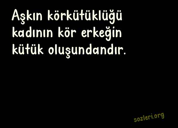 Aşkın körkütüklüğü kadının kör erkeğin kütük oluşundandır. ( Sevgiliye Komik Sözler )