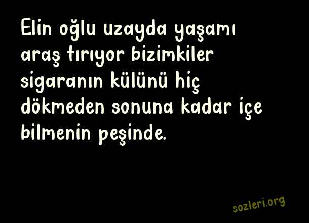 Elin oğlu uzayda yaşamı araş tırıyor bizimkiler sigaranın külünü hiç dökmeden sonuna kadar içe bilmenin peşinde. ( Komik Sözler )