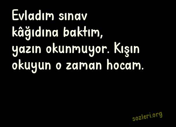 Evladım sınav kâğıdına baktım, yazın okunmuyor. Kışın okuyun o zaman hocam. ( Komik Sözler )