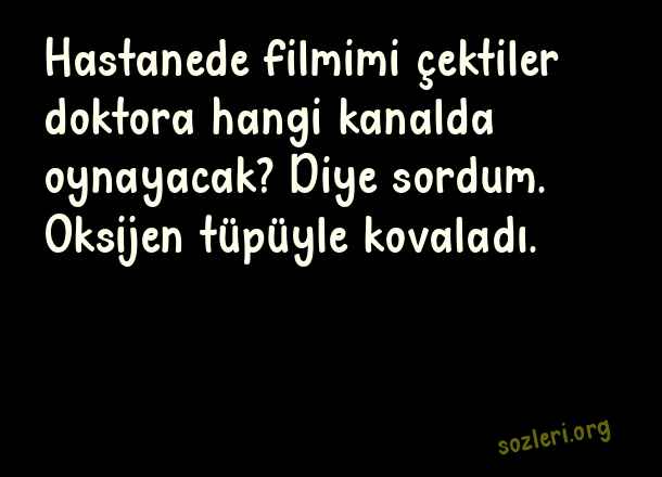 Hastanede filmimi çektiler doktora hangi kanalda oynayacak? Diye sordum. Oksijen tüpüyle kovaladı. ( Yaratıcı Komik Sözler )