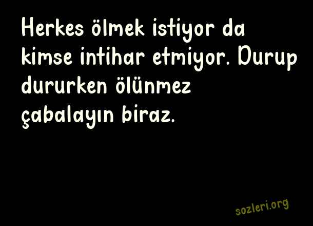 Herkes ölmek istiyor da kimse intihar etmiyor. Durup dururken ölünmez çabalayın biraz. ( Yaratıcı Komik Sözler )