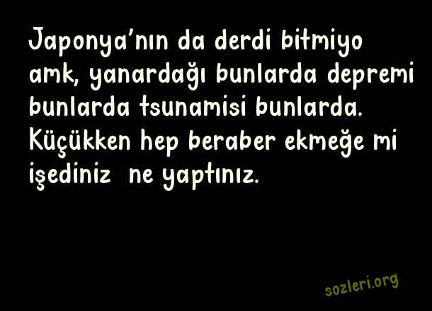 Japonya’nın da derdi bitmiyo amk, yanardağı bunlarda depremi bunlarda tsunamisi bunlarda. Küçükken hep beraber ekmeğe mi işediniz ne yaptınız. ( En Çok Paylaşılan Komik Sözler )