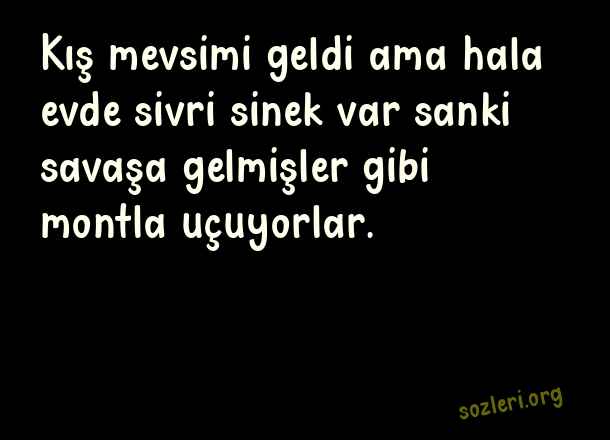Kış mevsimi geldi ama hala evde sivri sinek var sanki savaşa gelmişler gibi montla uçuyorlar. ( Sinek İle İlgili Komik Sözler )