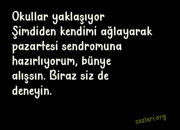 Okullar yaklaşıyor… Şimdiden kendimi ağlayarak pazartesi sendromuna hazırlıyorum, bünye alışsın. Biraz siz de deneyin. ( Okulların Açılması İle İlgili Komik Sözler )