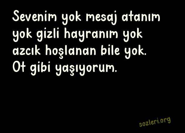 Sevenim yok mesaj atanım yok gizli hayranım yok azcık hoşlanan bile yok. Ot gibi yaşıyorum. ( Sevgiliye Komik Sözler )
