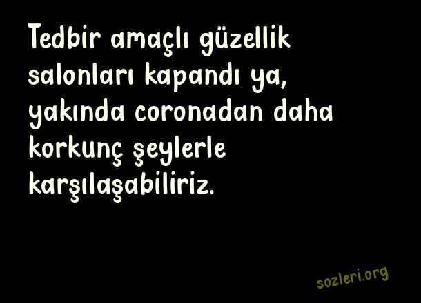 Tedbir amaçlı güzellik salonları kapandı ya, yakında coronadan daha korkunç şeylerle karşılaşabiliriz. ( Koronavirüs İle İlgili Komik Sözler )