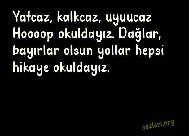 Yatcaz, kalkcaz, uyuucaz… Hoooop okuldayız. Dağlar, bayırlar olsun yollar hepsi hikaye okuldayız. ( Okulların Açılması İle İlgili Komik Sözler )