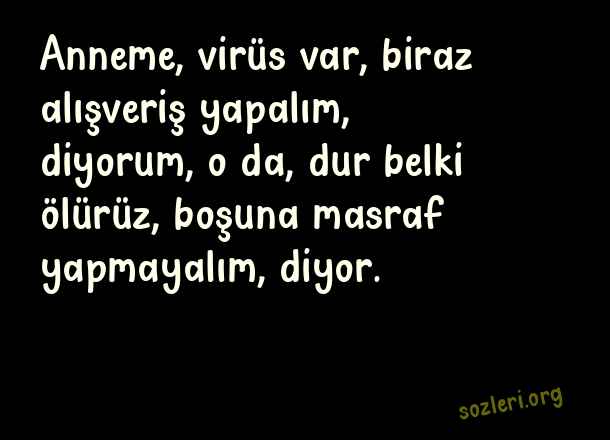Anneme, virüs var, biraz alışveriş yapalım, diyorum, o da, dur belki ölürüz, boşuna masraf yapmayalım, diyor. ( Koronavirüs İle İlgili Komik Sözler )