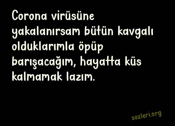 Corona virüsüne yakalanırsam bütün kavgalı olduklarımla öpüp barışacağım, hayatta küs kalmamak lazım. ( Koronavirüs İle İlgili Komik Sözler )
