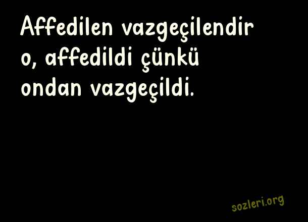 Affedilen vazgeçilendir o, affedildi çünkü ondan vazgeçildi. ( Küçük İskender )