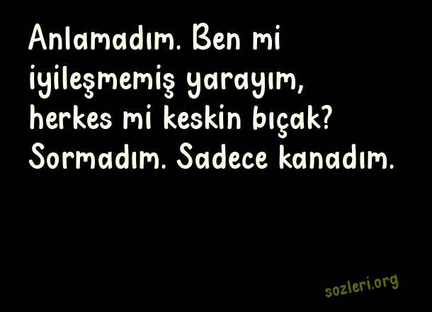 Anlamadım. Ben mi iyileşmemiş yarayım, herkes mi keskin bıçak? Sormadım. Sadece kanadım. ( Küçük İskender )