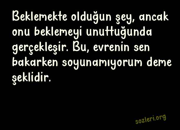 Beklemekte olduğun şey, ancak onu beklemeyi unuttuğunda gerçekleşir. Bu, evrenin sen bakarken soyunamıyorum deme şeklidir. ( Küçük İskender )
