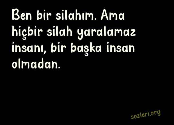 Ben bir silahım. - Küçük İskender Sözleri .. Ben bir silahım. Ama hiçbir silah yaralamaz insanı, bir başka insan olmadan. ( Küçük İskender )