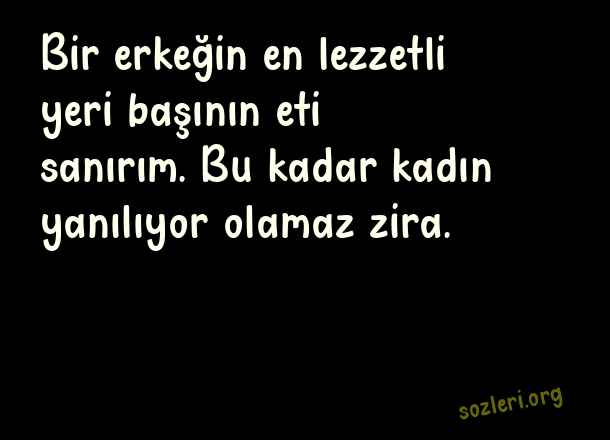 Bir erkeğin en lezzetli yeri başının eti sanırım. Bu kadar kadın yanılıyor olamaz zira. ( Küçük İskender )