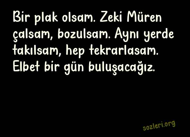 Bir plak olsam. Zeki Müren çalsam, bozulsam. Aynı yerde takılsam, hep tekrarlasam. Elbet bir gün buluşacağız. ( Küçük İskender )