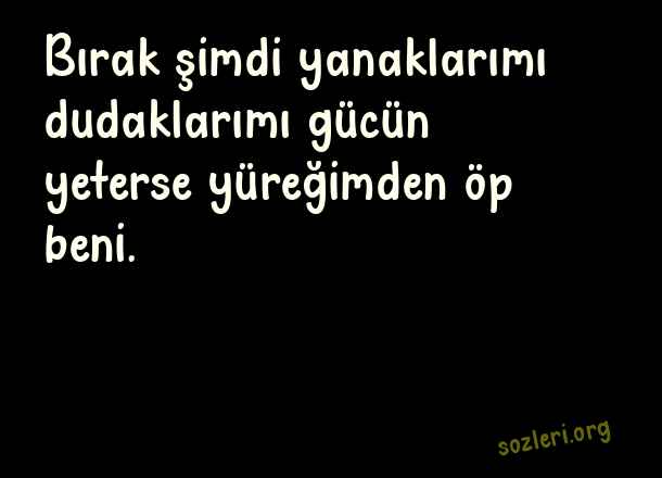 Bırak şimdi yanaklarımı dudaklarımı gücün yeterse yüreğimden öp beni. ( Küçük İskender )