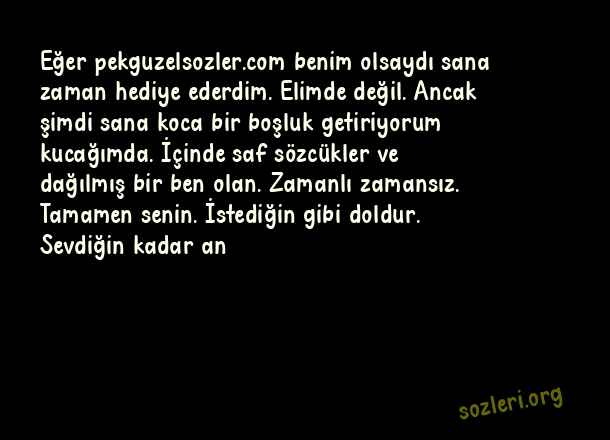 Eğer benim olsaydı sana zaman hediye ederdim. Elimde değil. Ancak şimdi sana koca bir boşluk getiriyorum kucağımda. İçinde saf sözcükler ve dağılmış bir ben olan. Zamanlı zamansız. Tamamen senin. İstediğin gibi doldur. Sevdiğin kadar an ( Küçük İskender )