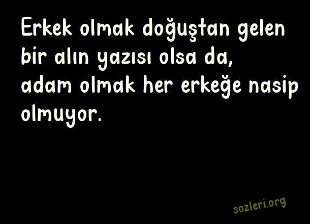 Erkek olmak doğuştan gelen bir alın yazısı olsa da, adam olmak her erkeğe nasip olmuyor. ( Küçük İskender )