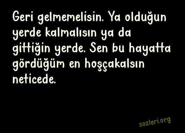 Geri gelmemelisin. Ya olduğun yerde kalmalısın ya da gittiğin yerde. Sen bu hayatta gördüğüm en hoşçakalsın neticede. ( Küçük İskender )
