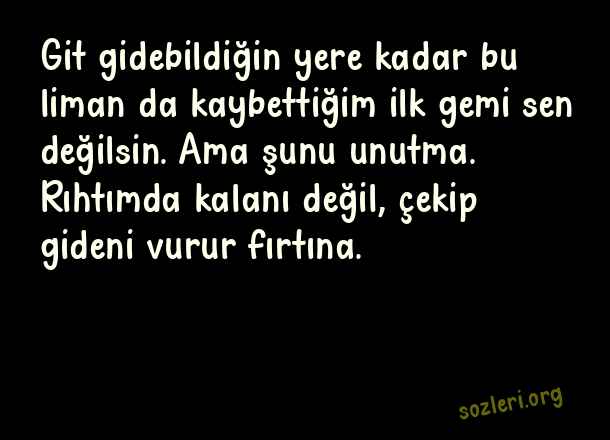 Git gidebildiğin yere kadar bu liman da kaybettiğim ilk gemi sen değilsin. Ama şunu unutma. Rıhtımda kalanı değil, çekip gideni vurur fırtına. ( Küçük İskender )