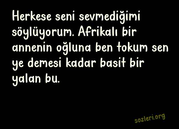 Herkese seni sevmediğimi söylüyorum. Afrikalı bir annenin oğluna ben tokum sen ye demesi kadar basit bir yalan bu. ( Küçük İskender )