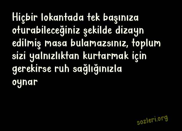Hiçbir lokantada tek başınıza oturabileceğiniz şekilde dizayn edilmiş masa bulamazsınız, toplum sizi yalnızlıktan kurtarmak için gerekirse ruh sağlığınızla oynar… ( Küçük İskender )