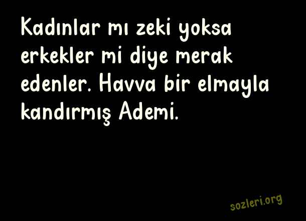 Kadınlar mı zeki yoksa erkekler mi diye merak edenler. Havva bir elmayla kandırmış Ademi. ( Küçük İskender )