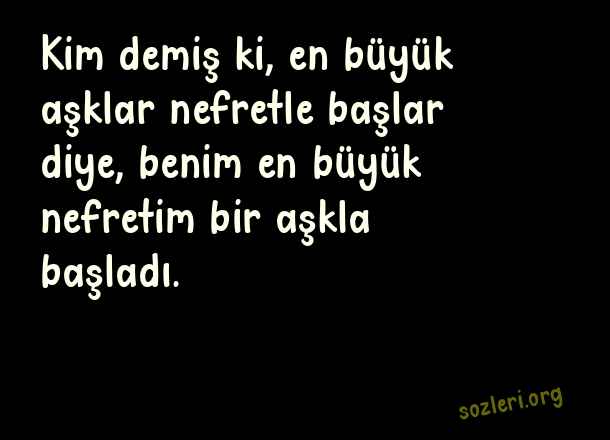 Kim demiş ki, en büyük aşklar nefretle başlar diye, benim en büyük nefretim bir aşkla başladı. ( Küçük İskender )