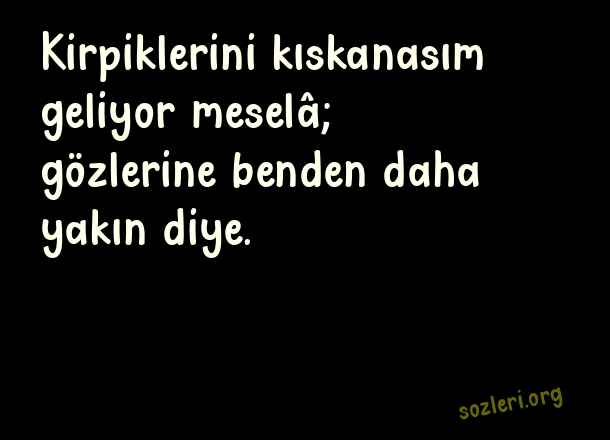 Kirpiklerini kıskanasım geliyor meselâ; gözlerine benden daha yakın diye. ( Küçük İskender )