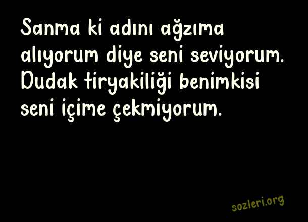 Sanma ki adını ağzıma alıyorum diye seni seviyorum. Dudak tiryakiliği benimkisi seni içime çekmiyorum. ( Küçük İskender )