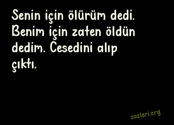 Senin için ölürüm dedi. Benim için zaten öldün dedim. Cesedini alıp çıktı. ( Küçük İskender )