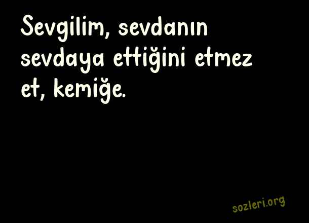 Sevgilim, sevdanın sevdaya ettiğini etmez et, kemiğe. ( Küçük İskender )
