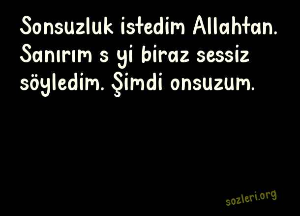 Sonsuzluk istedim Allahtan. Sanırım s yi biraz sessiz söyledim. Şimdi onsuzum. ( Küçük İskender )