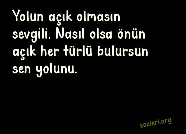 Yolun açık olmasın sevgili. Nasıl olsa önün açık her türlü bulursun sen yolunu. ( Küçük İskender )