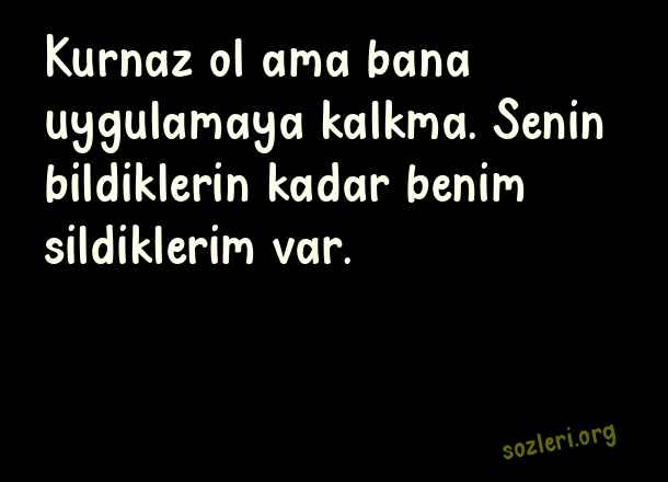 Kurnaz ol ama bana uygulamaya kalkma. Senin bildiklerin kadar benim sildiklerim var. ( Kurnaz Sözler )