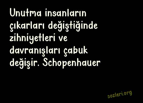 Unutma insanların çıkarları değiştiğinde zihniyetleri ve davranışları çabuk değişir. Schopenhauer ( Kurnaz Sözler )