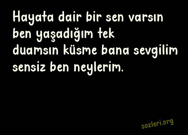 Hayata dair bir sen varsın ben yaşadığım tek duamsın küsme bana sevgilim sensiz ben neylerim. ( Küskünlük )
