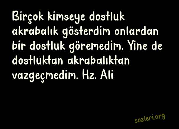 Birçok kimseye dostluk akrabalık gösterdim onlardan bir dostluk göremedim. Yine de dostluktan akrabalıktan vazgeçmedim. Hz. Ali ( Akrabaya Laf Sokucu Sözler )
