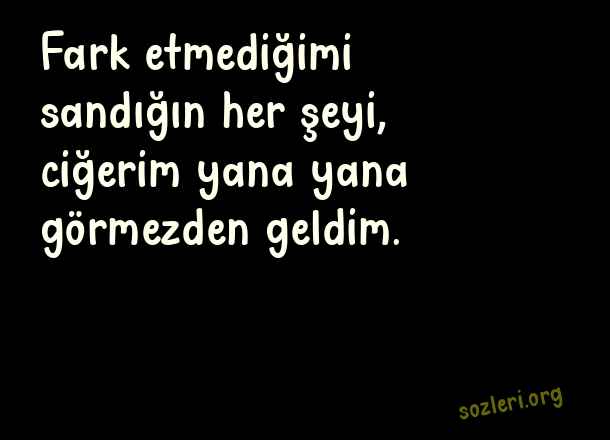 Fark etmediğimi sandığın her şeyi, ciğerim yana yana görmezden geldim. ( Arkadaşa Laf Sokucu Sözler )