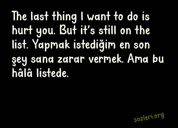 The last thing l want to do is hurt you. But it’s still on the list. Yapmak istediğim en son şey sana zarar vermek. Ama bu hâlâ listede. ( İngilizce Laf Sokucu Sözler )